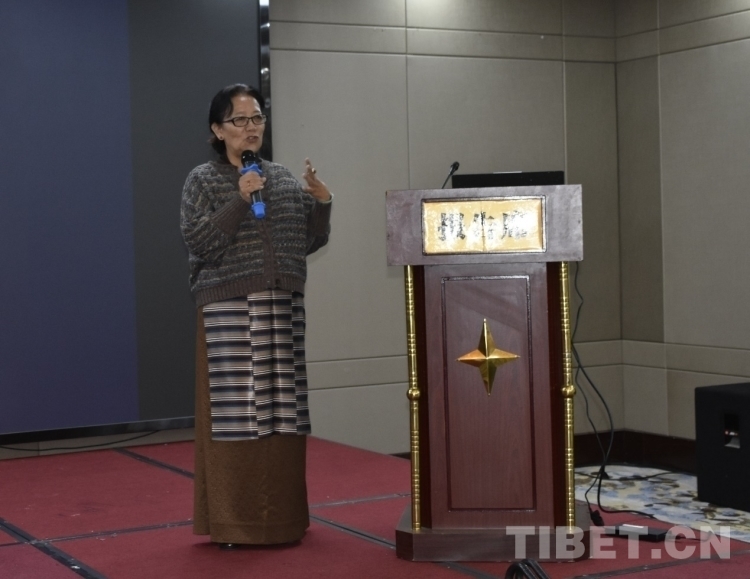 圖為11月13日,中國(guó)藏學(xué)研究中心研究員次仁央宗作關(guān)于拉薩文化的演講