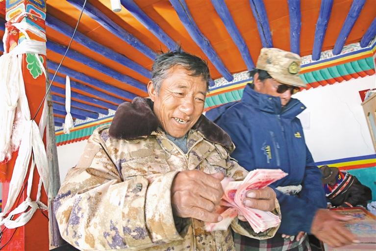 近年來,日土縣多瑪鄉(xiāng)黨委、政府立足“一羊一樹一道一湖”資源,不斷推動(dòng)產(chǎn)業(yè)結(jié)構(gòu)和運(yùn)營(yíng)模式改革,提升村集體經(jīng)濟(jì)產(chǎn)業(yè)發(fā)展活力,有效增加農(nóng)牧民群眾收入。圖為多瑪鄉(xiāng)合作社社員喜領(lǐng)分紅。通訊員 嘎瑪次仁 攝