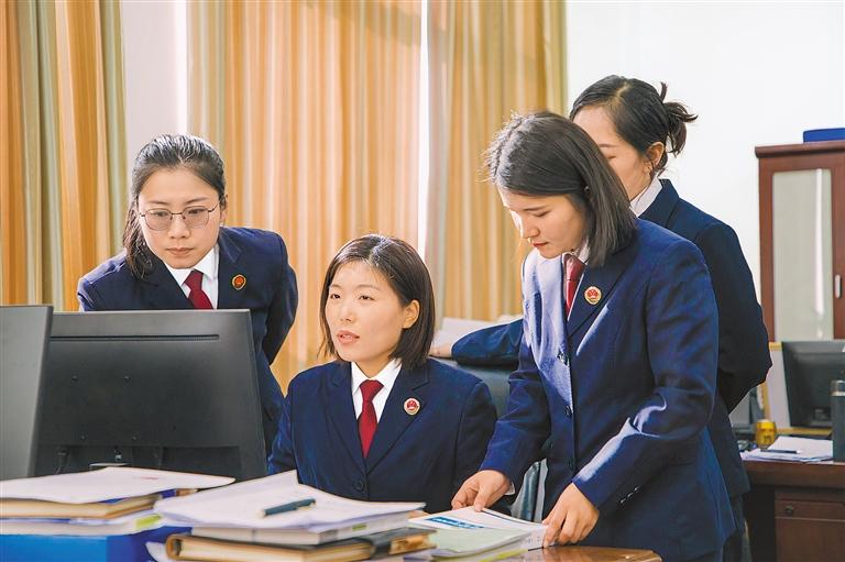 圖為席淑姣(左二)積極發(fā)揮傳幫帶作用,向年輕同事傳授辦案經(jīng)驗(yàn)。圖/文 記者 王杰學(xué) 通訊員 張超