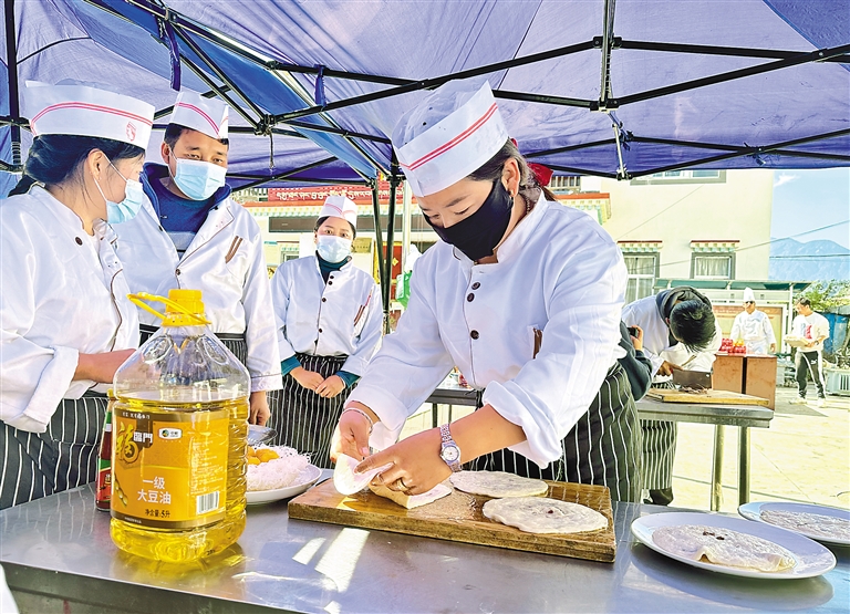 近日,為進(jìn)一步加強(qiáng)轉(zhuǎn)移就業(yè)工作,促進(jìn)勞務(wù)輸出,林芝市墨脫縣人力資源和社會(huì)保障局在格當(dāng)鄉(xiāng)舉辦了藏餐廚師技能培訓(xùn)班,幫助農(nóng)牧民群眾掌握一技之長(zhǎng),提高就業(yè)能力。
