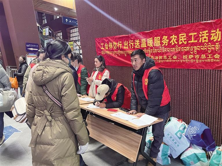 1月31日,西藏自治區(qū)總工會(huì)與拉薩市總工會(huì)聯(lián)合柳梧新區(qū)公安局應(yīng)急處突大隊(duì)、中國(guó)青藏鐵路集團(tuán)有限公司,在拉薩火車(chē)站內(nèi)為返鄉(xiāng)農(nóng)民工發(fā)放1000份“工會(huì)愛(ài)心大禮包”。[詳細(xì)] -
