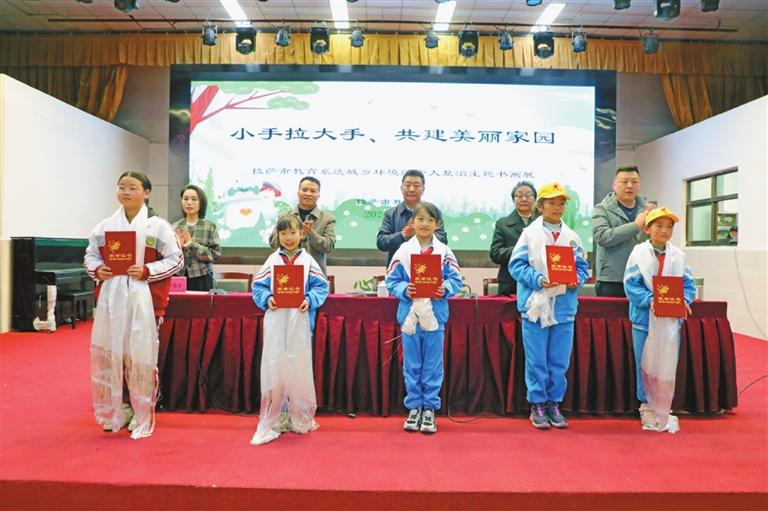 近日,拉薩市教育系統(tǒng)舉辦“小手拉大手、共建美麗家園”主題書畫展。全市各級各類學(xué)校積極參與書畫作品征集,展示拉薩市青少年對美麗家園的熱愛以及參與環(huán)境整治的堅定決心。
