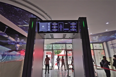 北航實(shí)驗(yàn)學(xué)??键c(diǎn),升級(jí)后的智能安檢門。新京報(bào)記者 李木易 攝