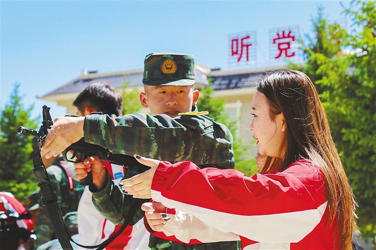 西部計劃志愿者體驗武器裝備。通訊員 劉爽 記者 楊子彥 攝