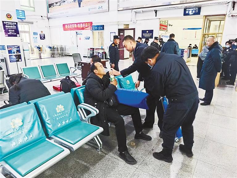 圖為工作人員為高反旅客送上氧氣罐。記者 楊小娟 通訊員 金耀勛 攝
