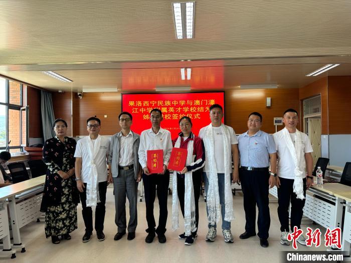 當日,青海果洛西寧民族中學和澳門濠江中學附屬英才學校結為姊妹學校簽約儀式在果洛西寧民族中學舉行。