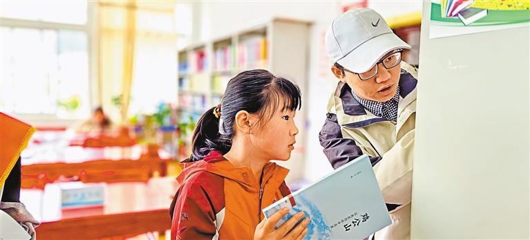 圖為林芝市圖書(shū)館工作人員為“小小圖書(shū)管理員”講解圖書(shū)編碼和書(shū)籍種類(lèi)等問(wèn)題。