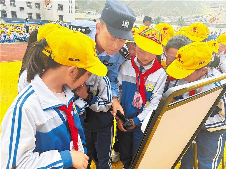 圖為那曲市索縣禁毒民警正在向轄區(qū)學校的師生宣講禁毒相關內(nèi)容。記者 萬靖 攝