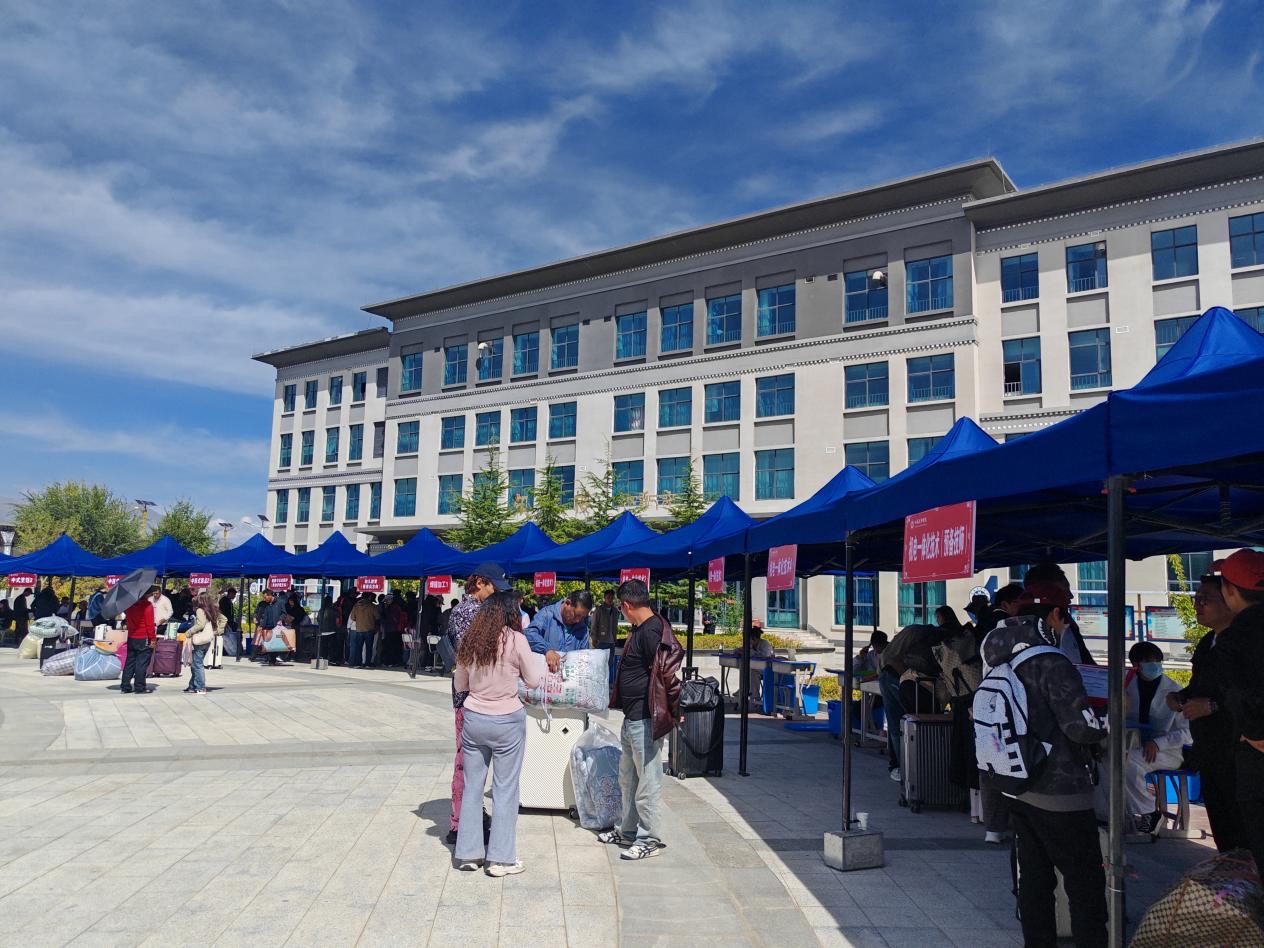在西藏技師學(xué)院校園里,隨處可見“歡迎新同學(xué)”的標(biāo)語和展板,校園內(nèi)還設(shè)置了立體合影展臺供學(xué)生留影,營造出了濃濃的暖心氛圍。學(xué)生和家長們帶著大包小包的行李,秩序井然地進(jìn)入校園,找到所錄取專業(yè)報到點前完成入學(xué)手續(xù),各班班主任都等候在報到點,耐心地回答學(xué)生們的疑問、專業(yè)學(xué)習(xí)情況、體檢和助學(xué)金的申請等問題。
