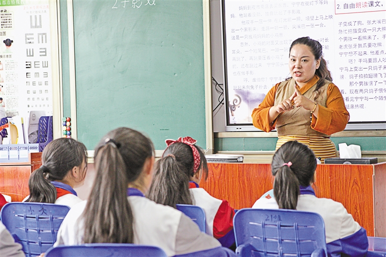 在昌都市特殊學校的課堂上,有一位老師以她獨特的方式詮釋著教育的意義。她就是澤巴卓嘎,一位被孩子們親切稱為“心靈引路人”的特殊學校教師。課堂上,她像一位舞者,優(yōu)雅靈動,用手語與聽障的孩子們交流,仿佛在傳遞一曲無聲的樂章。