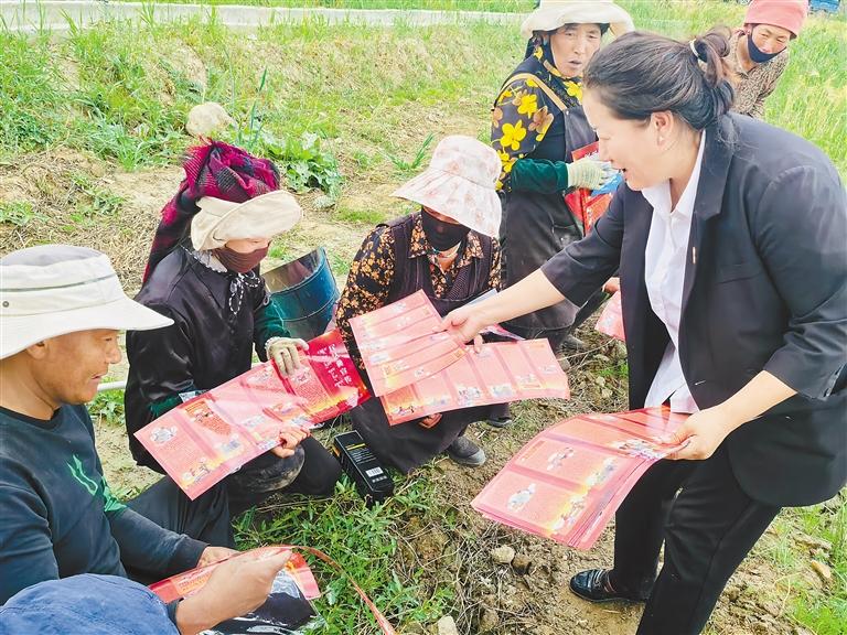 圖為林周縣人民法院工作人員為群眾發(fā)放宣傳冊。記者 央金 攝