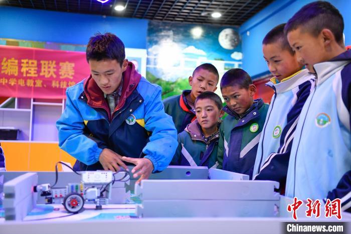10月25日,在西藏自治區(qū)那曲市聶榮縣中學(xué),學(xué)生展示計算機編程作品。中新社記者 貢嘎來松 攝