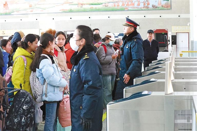 近日,為更好地服務(wù)學生寒假返鄉(xiāng),山南火車站積極與當?shù)馗鲗W校聯(lián)系接洽,及時掌握返鄉(xiāng)學生的具體人數(shù)及客票、乘車需求等信息,并增設(shè)了學生票辦理專窗,安排專人引導。同時,山南火車站還組織人員在安檢口、檢票口、電扶梯、站臺等關(guān)鍵區(qū)域加強引導幫扶,特別開辟了學生安檢專用通道,幫助學生快速驗證進站,減少等待時間。