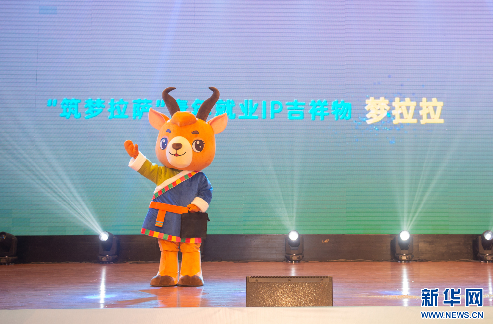 4月27日,活動現(xiàn)場公布“筑夢拉薩”青年就業(yè)IP吉祥物“夢拉拉”。新華網(wǎng) 旦增努布 攝