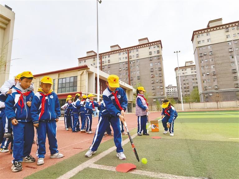 學(xué)生練習(xí)發(fā)球技巧。記者 明吉 鄭璐 見習(xí)記者 馮琳琳 攝