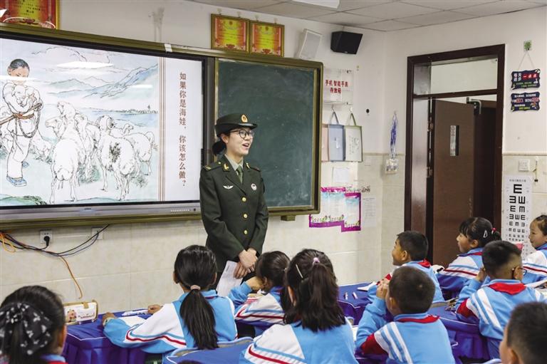 圖為官兵給學(xué)生講授國防知識(shí)。 文/圖 通訊員 吳成淼 單渤 常欣 記者 王香香