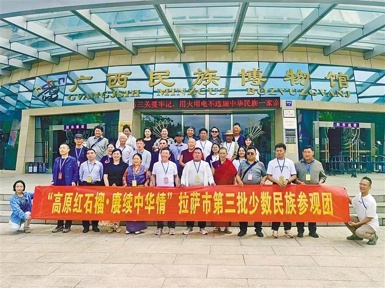 近期,拉薩市著力創(chuàng)建全國民族團結進步模范區(qū)專項辦、市委統(tǒng)戰(zhàn)部、市民委組織開展拉薩市第三批“高原紅石榴·賡續(xù)中華情”少數(shù)民族參觀團(以下簡稱參觀團)赴廣西壯族自治區(qū)、云南省考察學習。參觀團先后考察了廣西民族博物館、南寧市武鳴區(qū)五彩壯鄉(xiāng)非遺傳承基地等24個點位,深入了解南寧、大理等4個市(州)民族團結進步創(chuàng)建工作中的好經驗好做法。