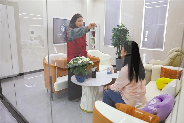 塔瑪社區(qū)社工在賦能基地心靈驛站給群眾做心理輔導(dǎo)。