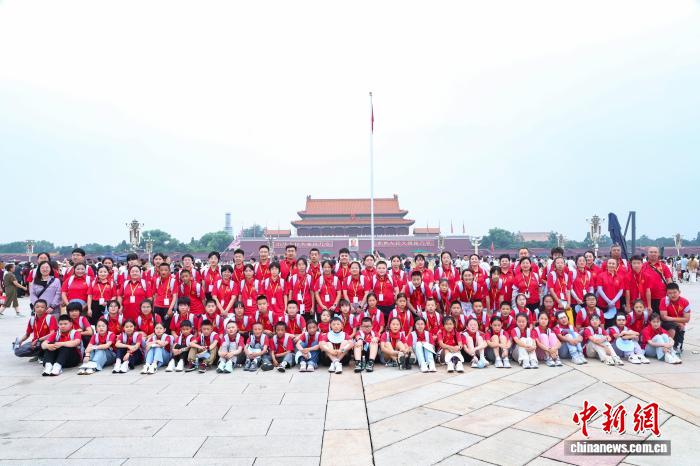 7月27日,“我愛北京天安門”夏令營營員走進北京天安門廣場。主辦方供圖