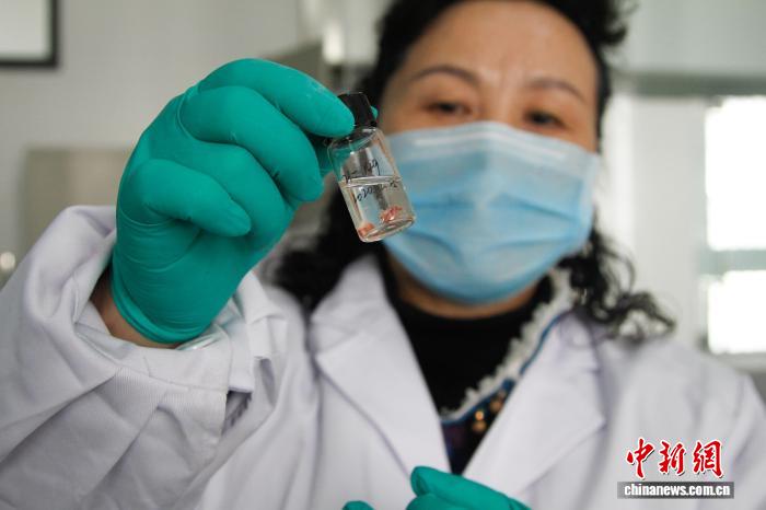 資料圖為2020年2月,西藏大學(xué)醫(yī)學(xué)院副院長(zhǎng)巴桑卓瑪展示用于先天性心臟病研究的實(shí)驗(yàn)小鼠生物組織切片。趙朗 攝