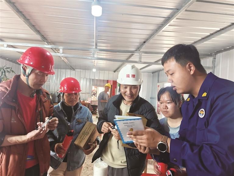 宣講員為工人講解安全常識。圖由拉薩市消防救援支隊(duì)提供