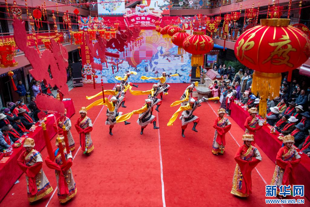 2月23日,拉薩市城關(guān)區(qū)娘熱鄉(xiāng)民間藝術(shù)團(tuán)的演員在德賽大院里表演。新華網(wǎng) 旦增努布 攝