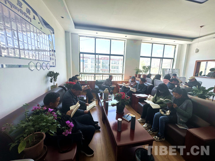 圖為4月23日,拉薩市尼木縣小學(xué)的教師們?cè)陂喿x書籍 攝影:倉(cāng)覺