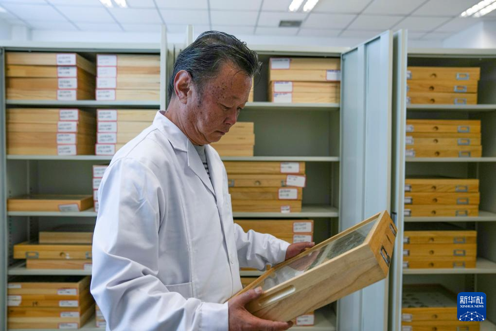 達娃在位于拉薩的西藏自治區(qū)高原生物研究所檢視昆蟲標本(4月22日攝)。新華社記者 旦增尼瑪曲珠 攝