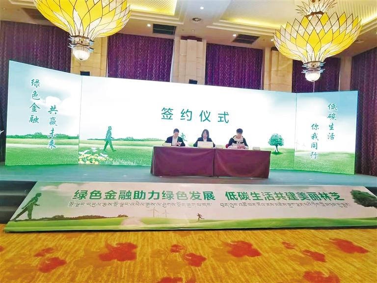 在中國建設(shè)銀行西藏自治區(qū)分行舉辦“綠色金融助力綠色發(fā)展 低碳生活共建美麗林芝”活動上的簽約儀式。