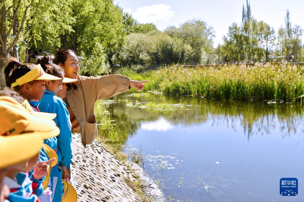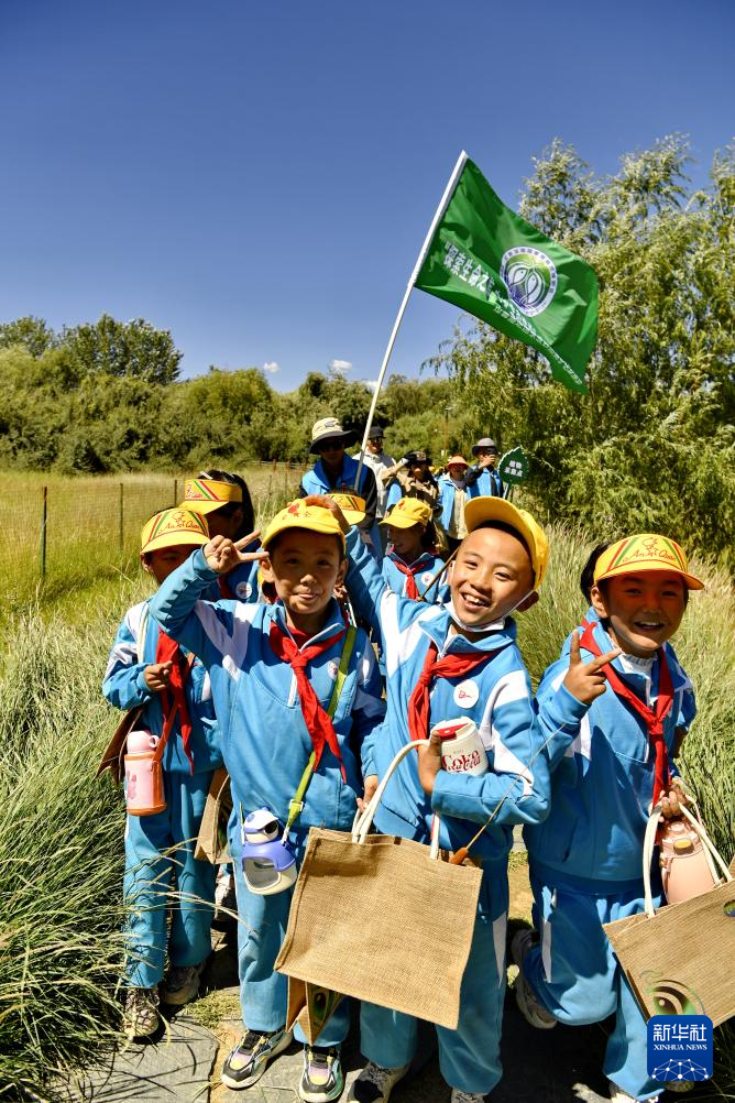 8月15日,拉魯小學的學生們在拉魯濕地國家級自然保護區(qū)開展生態(tài)科普研學活動。新華社記者 張汝鋒 攝 ??