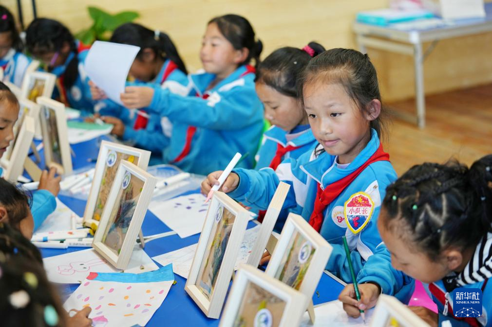 8月15日,拉魯小學的學生在拉魯濕地國家級自然保護區(qū)管理局科普小教室里進行生態(tài)主題繪畫。新華社記者 張汝鋒 攝 ??
