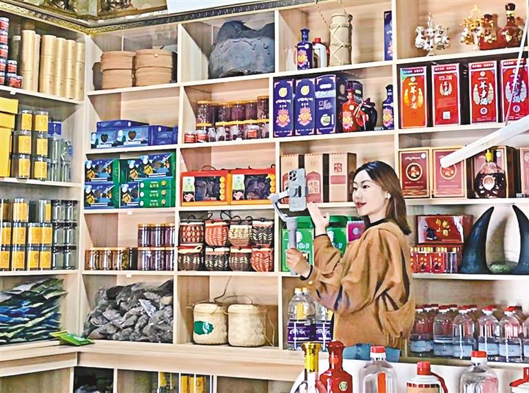 就在記者來到扎日鄉(xiāng)采訪的前一天,次仁康珠在家里的“扎日特產(chǎn)店”專門開設(shè)了一個房間并精心布置,開始嘗試在網(wǎng)絡(luò)平臺直播帶貨。
