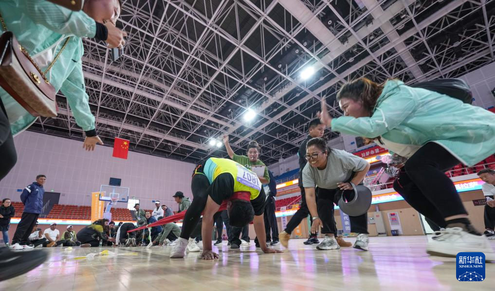 這是8月19日拉薩市特殊教育學(xué)校代表隊(duì)選手索朗羅布(中)在押加比賽中。新華社記者 晉美多吉 攝