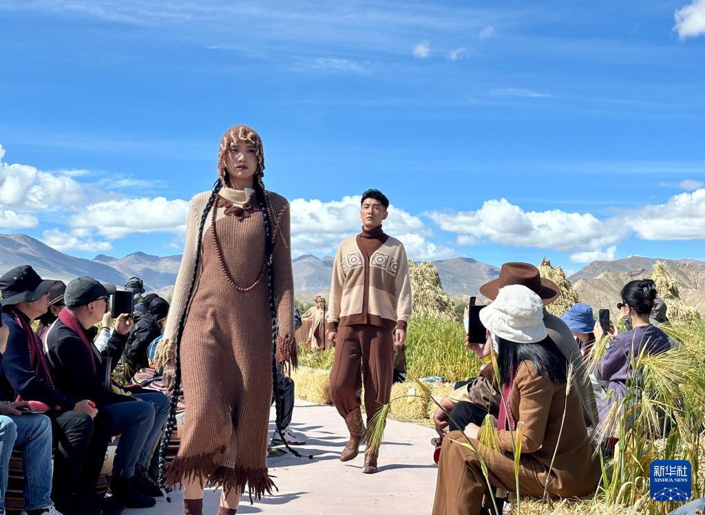 高原山腳下、青稞麥浪中,氆氌搖身一變成為時(shí)尚服飾,在海拔約4000米的秀場上吸引了現(xiàn)場中外嘉賓和線上觀眾的關(guān)注。9月8日,一場以“雪域·交響”為主題的發(fā)布秀在西藏江孜縣班覺倫布村舉行,現(xiàn)場不僅有身著氆氌時(shí)裝的專業(yè)模特現(xiàn)場走秀,還有30位氆氌手工匠“阿佳”(藏語意為大姐)在T臺旁展示梳毛捻線等工序,氆氌紡織機(jī)聲與鋼琴獨(dú)奏交錯(cuò)相生。
