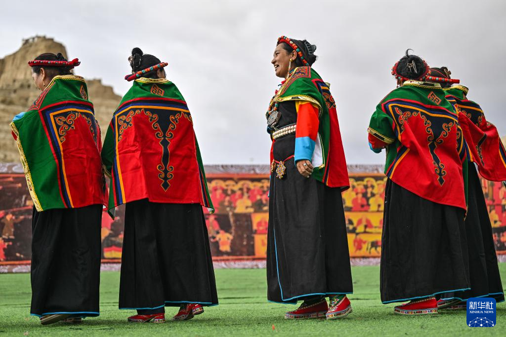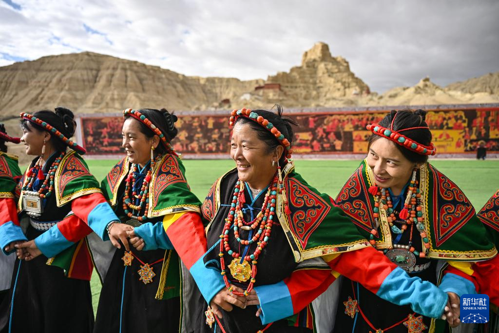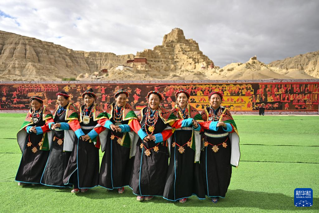 在西藏阿里地區(qū)札達(dá)縣古格王國(guó)遺址腳下,當(dāng)?shù)卮迕癖硌荨靶琛保?月11日攝)。新華社記者 孫瑞博 攝
