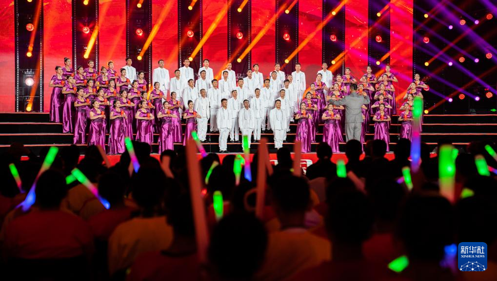 參賽隊伍在合唱大賽上演繹曲目(9月25日攝)。新華社記者 丁增尼達 攝 ??