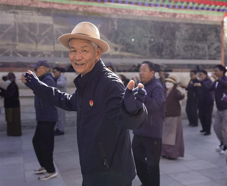 今年78歲的巴桑次仁,每天都要到宗角祿康公園跳鍋莊舞,在鍛煉身體之余還能結(jié)識(shí)很多老年朋友,平常也會(huì)一起約著出去游玩。“現(xiàn)在的生活很幸福,衣食住行不用愁,最重要的還是身體健康,每天去公園里跳跳舞不僅心情愉悅也能鍛煉身體?!闭f(shuō)起自己的晚年生活,老爺子倍感欣慰。