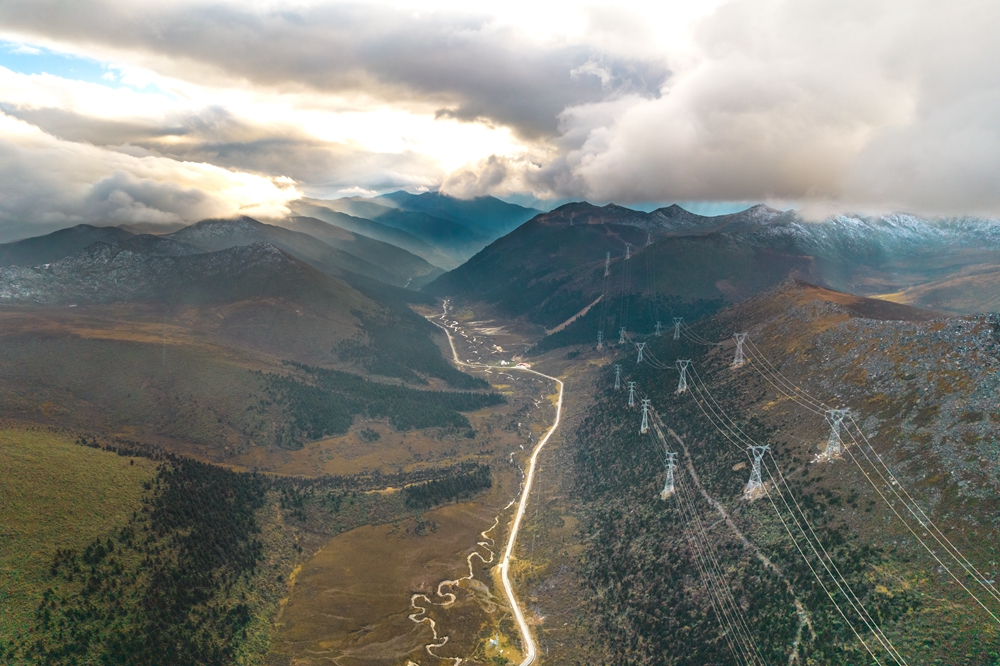 500千伏藏中聯(lián)網(wǎng)工程色季拉山鐵塔風(fēng)光。趙清鵬攝
