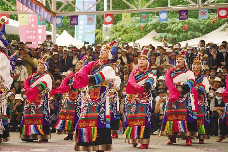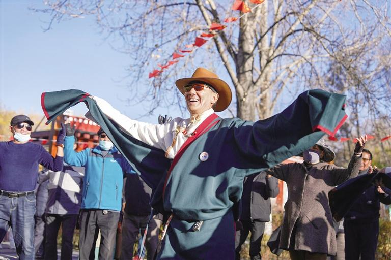 音樂(lè)響起,大家隨著節(jié)奏舞動(dòng),每個(gè)人舉手投足間都是那么自然和率真,大家著裝各異、民族各異,但是所有人臉上洋溢著幸福歡快的笑容。在這里,傳統(tǒng)和現(xiàn)代交織,民族文化交往交流交融。