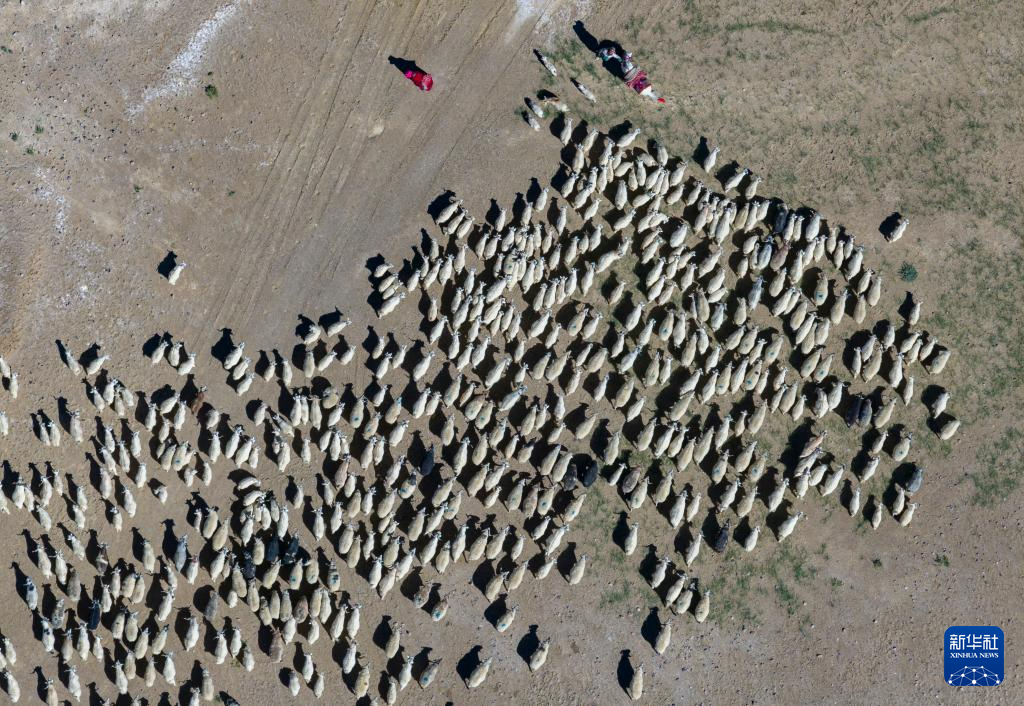 日土縣牧民在放牧白絨山羊(無人機照片,2023年9月21日攝)。新華社記者 姜帆 攝 ??