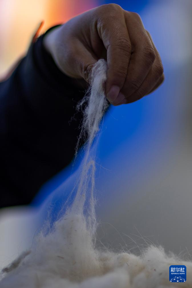 日土縣白絨山羊原種場場長巴久在展示白山羊絨樣品(11月16日攝)。新華社記者 姜帆 攝 ??