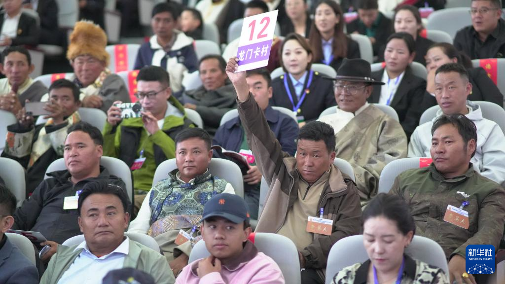 這是2024年日土縣優(yōu)質(zhì)種公羊拍賣會的舉牌場景(8月30日攝)。優(yōu)質(zhì)種羊能帶來更高的收入,日土縣牧民踴躍參加拍賣會。新華社發(fā)