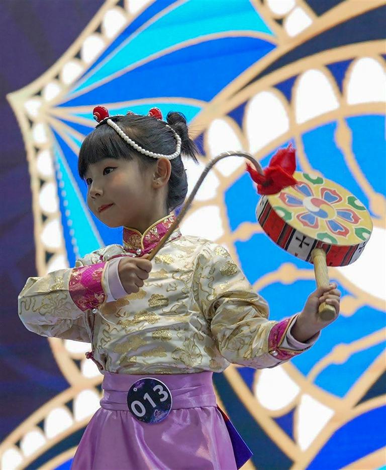 初賽現(xiàn)場,小選手們身著華麗的藏族服飾,隨著音樂的節(jié)奏翩翩起舞。他們每一個(gè)動(dòng)作都充滿了力量與美感,將熱巴舞的歡快與熱情表現(xiàn)得淋漓盡致。其中,一位名叫馮詩雅的8歲漢族女孩尤為引人注目。她生動(dòng)的表情和自信的舞臺(tái)表現(xiàn)力,贏得了現(xiàn)場觀眾的掌聲和評委的高度評價(jià)。