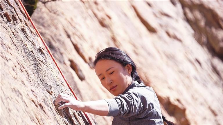 攀巖中的仁青拉姆。