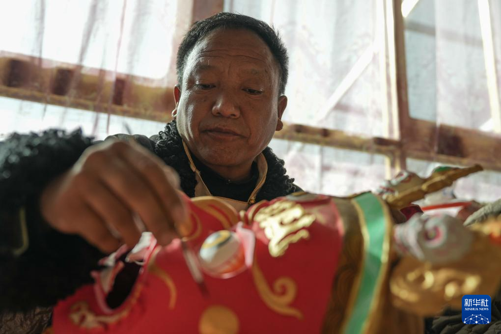 12月9日,西洛在合作社制作西藏傳統(tǒng)面具。新華社記者 丁增尼達 攝 ??