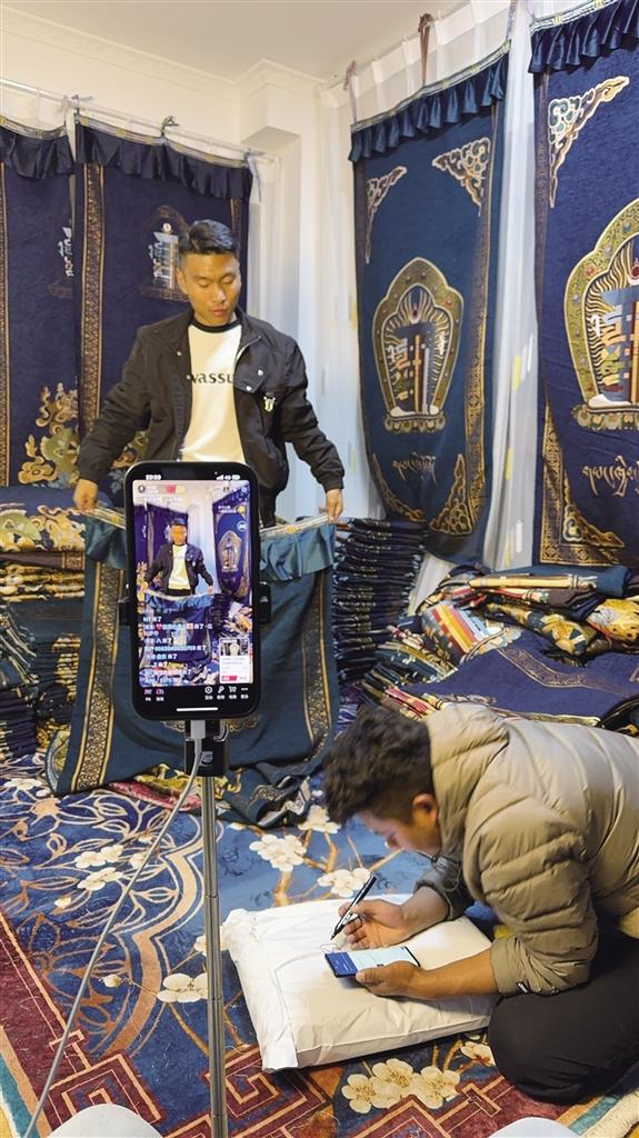 此后,為提升直播效果,格桑平措團隊認真總結經(jīng)驗教訓,不斷學習直播技巧,深入研究產(chǎn)品賣點,從吸引觀眾、介紹產(chǎn)品到處理售后問題,每個環(huán)節(jié)都認真鉆研。同時,他們精心策劃每一場直播,不僅詳細介紹產(chǎn)品,還講述產(chǎn)品背后的文化故事,力求講解生動有趣,吸引了不少粉絲關注。在一次次的嘗試和努力下,藏式門簾在電商平臺上逐漸打開知名度,銷量穩(wěn)步增長,突破了2000單。面對取得的銷售成績,格桑平措也在不斷思考:“直播帶貨不僅拓寬了產(chǎn)品銷路,更重要的是,通過直播我們能與消費者實時互動,了解他們的需求和反饋,從而持續(xù)優(yōu)化產(chǎn)品和服務,讓我們的創(chuàng)業(yè)之路走得更穩(wěn)?!背辈ж浲?,格桑平措團隊還借助短視頻平臺和社交媒體平臺,發(fā)布產(chǎn)品信息,制作精美的宣傳視頻,吸引了更多潛在客戶的目光。