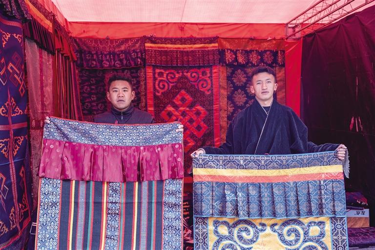 “阿佳,這個門簾質量超棒,您瞧瞧?!薄斑@款門簾不僅樣式精美,材質還特別厚實,冬天掛門上保暖效果可好啦?!?月10日,堆龍德慶區(qū)第三屆“上谷福地·吉慶年貨集市”熱鬧開市,市民們在攤位間穿梭,挑選心儀的商品,現(xiàn)場人頭攢動、熱鬧非凡。在市集的一側,格桑平措正熱情地向顧客介紹攤位上的藏式門簾。他的熱情極具感染力,不少市民被打動,很快就選到滿意的門簾,滿臉笑容地離開攤位。格桑平措告訴記者:“這是我們首次參加年貨節(jié),帶來的都是店里銷量最好的產(chǎn)品。藏歷新年快到了,我們希望把最優(yōu)質的產(chǎn)品推薦給大家,為顧客的家增添濃濃的年味?!?/p>