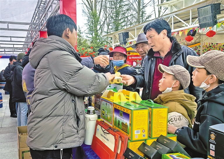 圖為市民在宗角祿康公園內(nèi)購(gòu)買(mǎi)低氟健康茶。記者 洛桑 攝