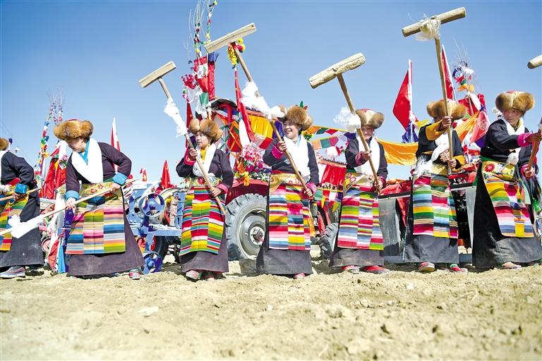 圖為扎其鄉(xiāng)藏仲村村民們在舉行春耕儀式。記者 潘多 攝