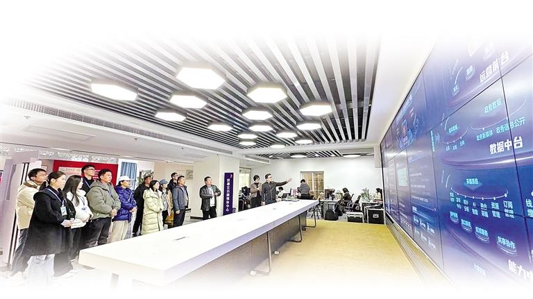 圖為瓊結(jié)縣宣傳思想文化系統(tǒng)“鄉(xiāng)村數(shù)字文化”考察組在湖北省宜昌市三峽融媒體中心參觀學(xué)習(xí)。 記者 次仁平措 通訊員 倫珠澤仁 攝